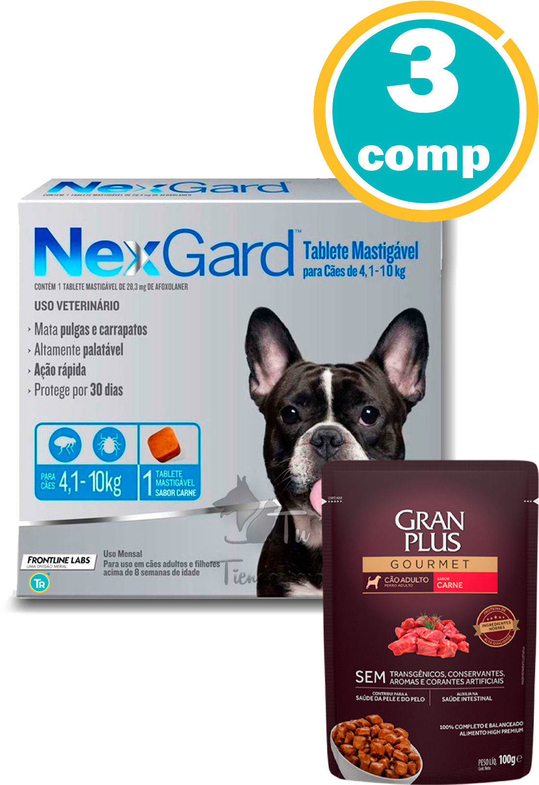 TU RACIÓN PROMOCIÓN DISPONIBLE ANTIPULGAS Y GARRAPATAS NEXGARD Perros 4 - 10 kg x 3 comp + Salsa Gran Plus (131707)