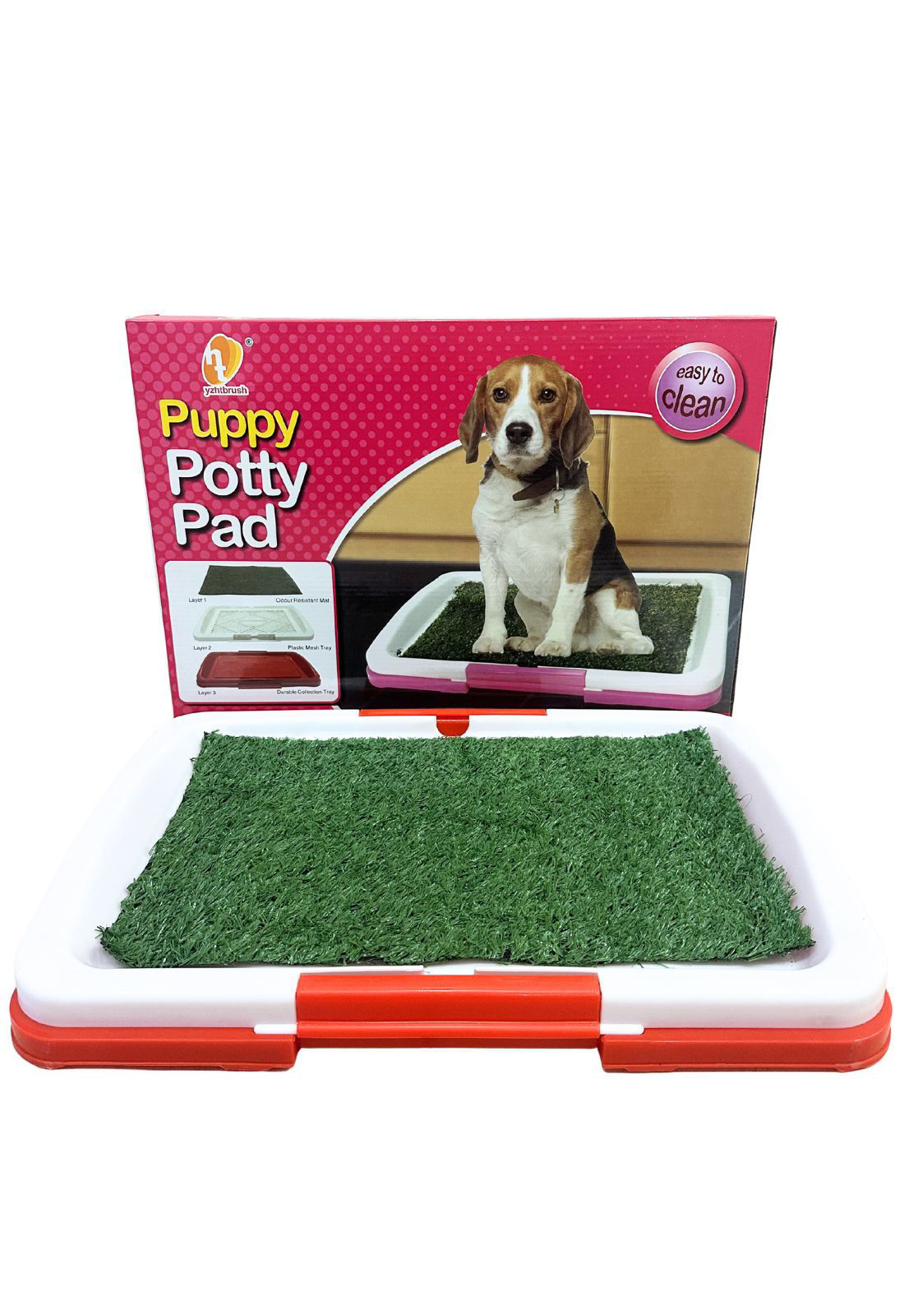 Práctica bandeja sanitaria con césped sintético diseñada para facilitar el entrenamiento y la higiene diaria de tu perro. Su sistema de tres capas permite una mejor absorción y recolección de líquidos, manteniendo la superficie más seca y limpia. Ideal para departamentos, balcones o días de lluvia.