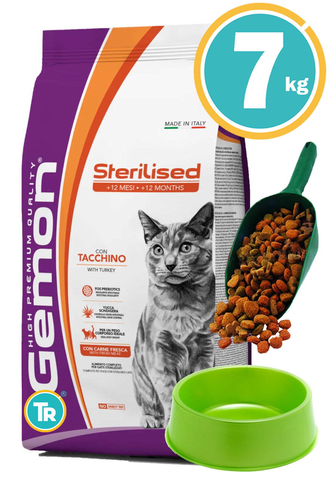 Gemon High Premium Quality es la nueva gama de comida para gatos elaborada con ingredientes de calidad superior para asegurar una dieta diaria saludable para tu amigo esponjoso. Los productos especiales están formulados con elementos superiores que los hacen ricos en proteínas esenciales, vitaminas y sales minerales para la nutrición diaria de su fiel amigo y un crecimiento saludable y equilibrado. Se proporcionan diferentes recetas según la edad y el estilo de vida del animal. GEMON STERILIZED CAT WITH TURQUÍA es un alimento completo para mascotas para gatos adultos esterilizados. La formulación se caracteriza por ingredientes de primera calidad y fuentes de nutrientes esenciales como el pavo, y fuente de carbohidratos, como el arroz, cocidos y altamente digeribles gracias al proceso de extrusión. Una dieta ideal para gatos esterilizados elaborada con fructooligosacáridos (FOS) y mananooligosacáridos (MOS), que son prebióticos para apoyar el bienestar intestinal y con pulpa de remolacha para ayudar a mantener un peso corporal ideal. La receta contiene carne fresca para una palatabilidad óptima y aceite de salmón para mantener el pelaje brillante y suave. También contiene yuca schidigera para limitar los olores intestinales. Sin colorantes ni conservantes artificiales añadidos.