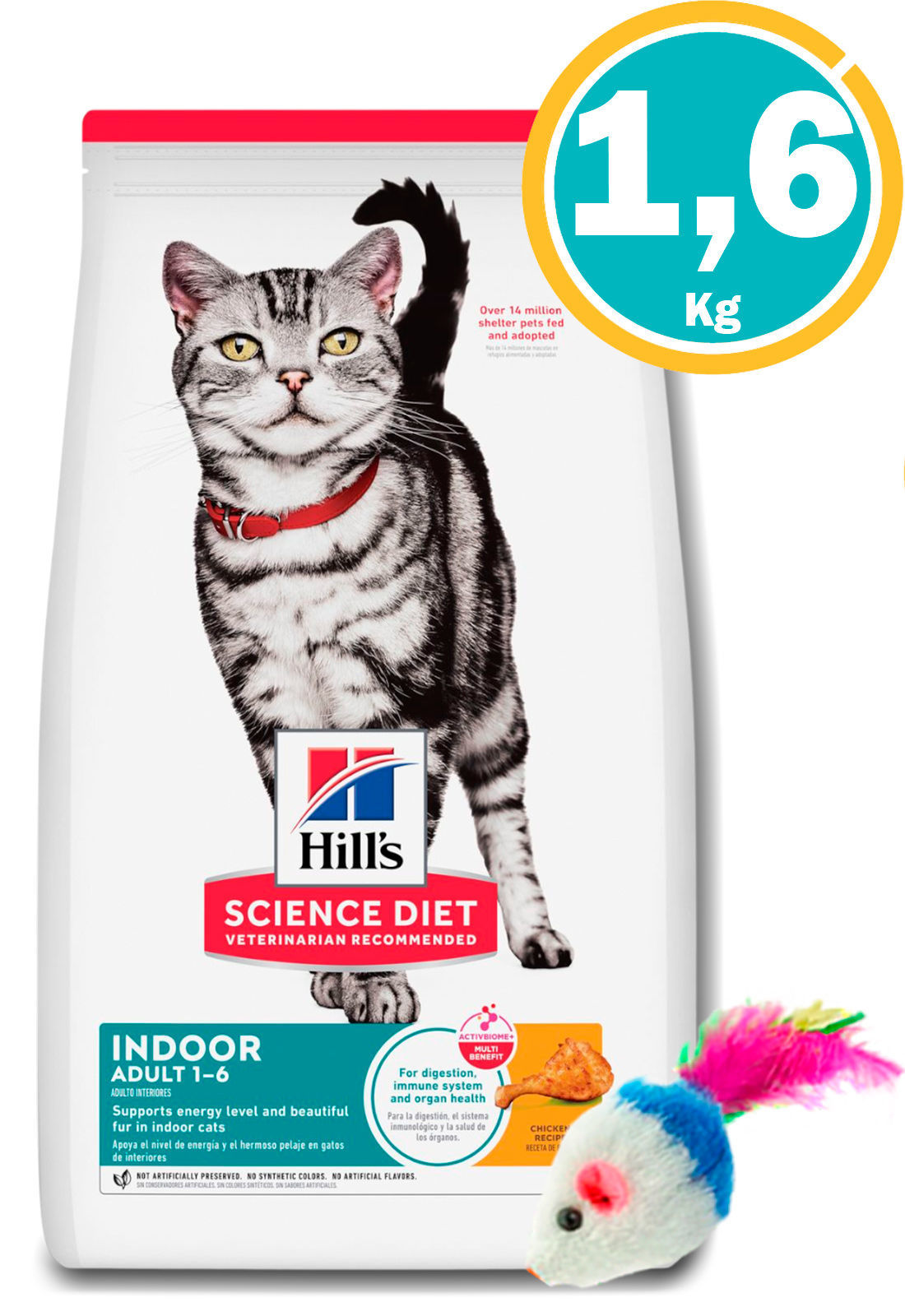 El alimento seco para gatos Hill's™ Science Diet™ Indoor Adult está especialmente formulado para abastecer las necesidades de energía de gatos con un estilo de vida de interiores durante la mejor parte de su vida. Fibra natural que favorece la salud digestiva e ingredientes de alta calidad que facilitan la limpieza de la caja de arena Proteína de alta calidad para músculos magros Ingredientes naturales de alta calidad, fáciles de digerir para una comida nutritiva, llena de sabor Recomendado para: Gatos adultos de 1 - 6 años de edad con un estilo de vida de interiores. No recomendado para: Gatitos y gatas gestantes o lactantes. Durante la gestación o lactancia, las gatas deben cambiar al alimento seco para gatos Hill’s® Science Diet® Kitten o Hill's® Science Diet® Kitten Indoor. Información adicional: Nutrición natural* con un delicioso sabor para una vida larga y feliz. Con suaves ronroneos y frotaditas de nariz aún más suaves, usted y su gato tienen una relación única. Porque cada momento que pasan juntos es especial, nos esforzamos por darles más de ellos. Con ingredientes naturales y los nutrientes correctos, Hill's Science Diet está preparado con precisión para ofrecer a su gato la nutrición que necesita para una salud y felicidad de por vida. Fabricamos cada bulto de nuestro alimento seco para gatos en nuestras propias instalaciones en los EUA con ingredientes naturales* de la más alta calidad de Norteamérica, Europa y Nueva Zelanda. Dichos ingredientes deben satisfacer nuestros estrictos requerimientos de pureza y contenido nutricional, que exceden los estándares de la industria.. Usted puede hacer la diferencia en la vida de mascotas que viven en albergues. Con cada compra de Science Diet, puede ayudar a alimentar diariamente a más de 100,000 mascotas sin hogar los 365 días del año. *más vitaminas, minerales y aminoácidos
