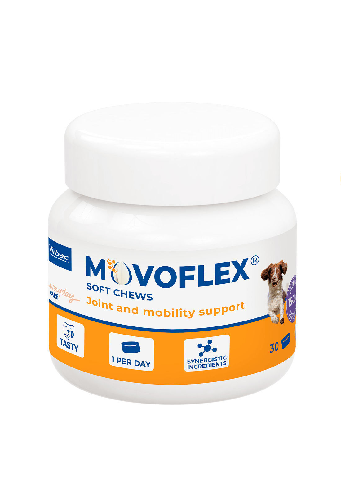 MOVOFLEX® Soft Chews ofrece un cuidado articular adaptado a cada etapa de la vida del perro, con tres formatos disponibles según su edad, tamaño y nivel de actividad. A los perros les encanta su sabor, y los dueños valoran su comodidad.