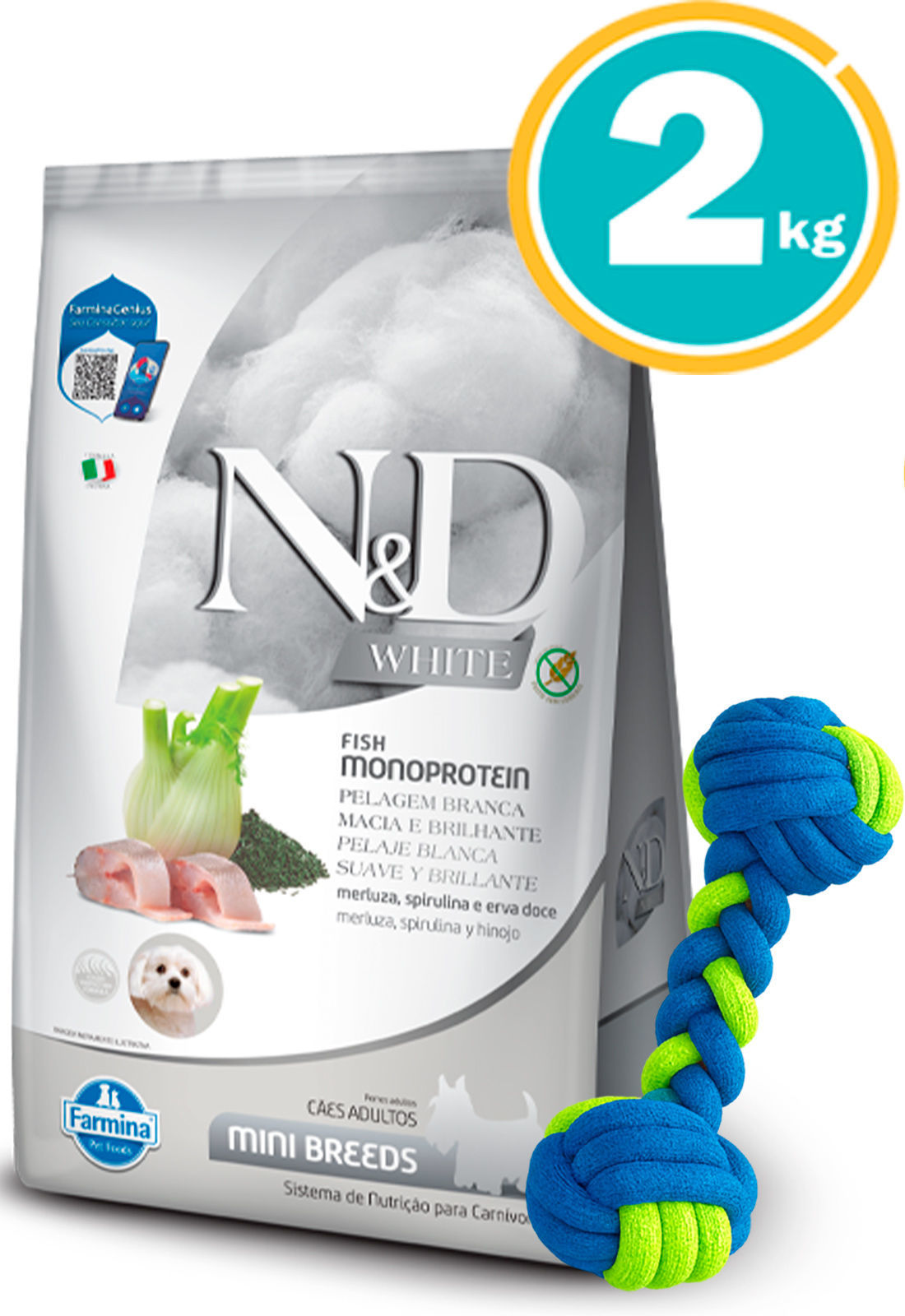 TU RACIÓN PROMOCIÓN DISPONIBLE NYD Perro Adulto MINI WHITE Monoproteína PESCADO BLANCO 2KG + Juguete Cuerda (TR144)