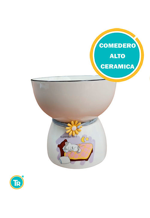 Este comedero de loza destaca por su diseño elevado, pensado para ofrecer una posición más cómoda y natural para tu gato a la hora de alimentarse. La altura ayuda a reducir la tensión en el cuello y favorece una mejor digestión.