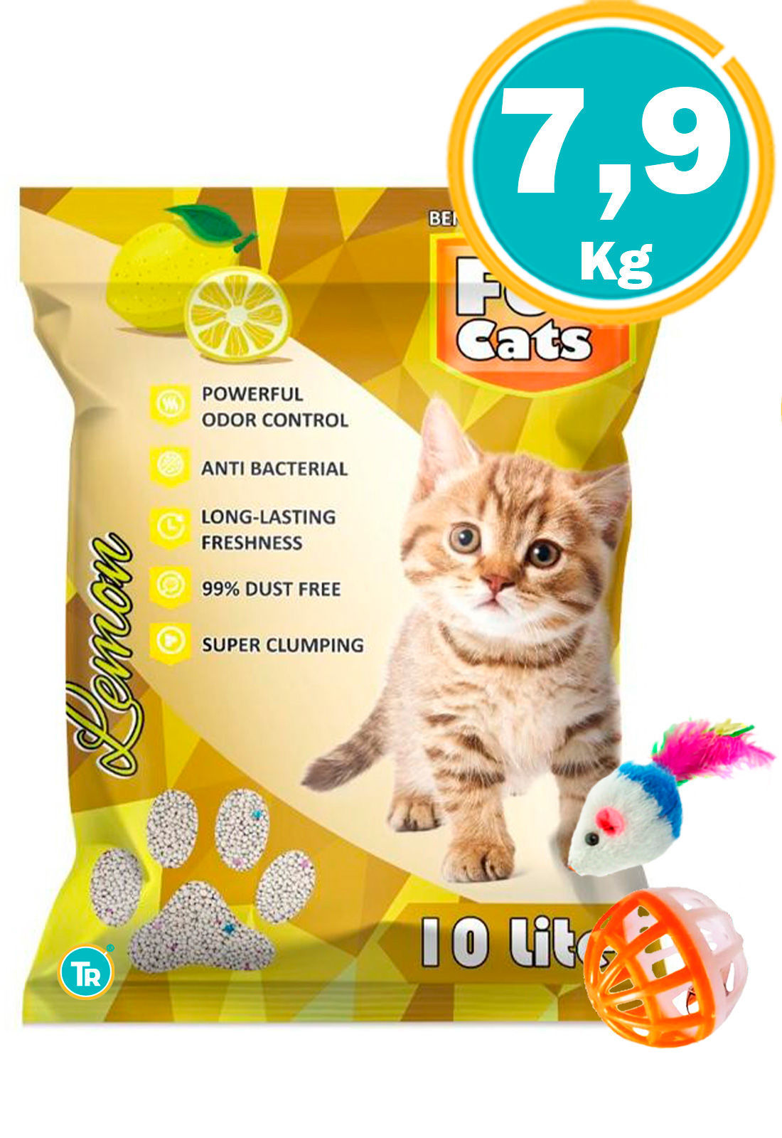 TU RACIÓN PROMOCIÓN DISPONIBLE Sanitario Bentonita Esfera FOR CATS 7.9KG (10L) LIMON + Ratón y pelota (TR099 + PC12)