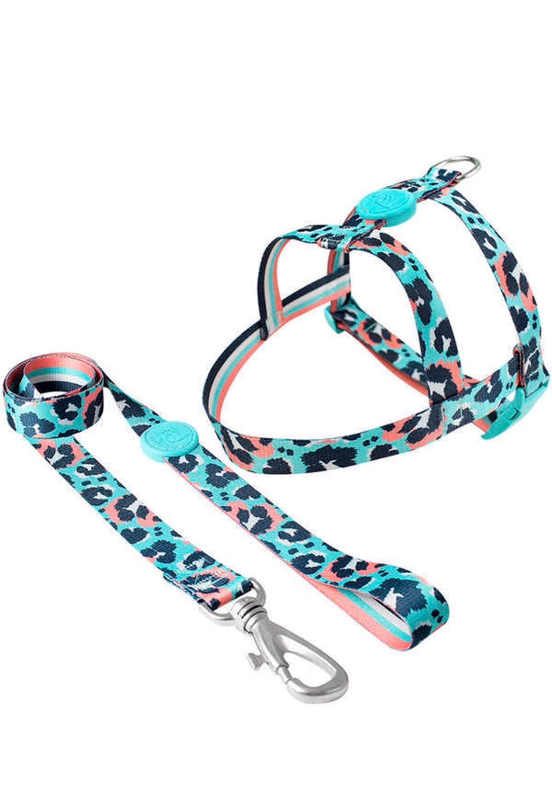 Fabricado con materiales de alta calidad, el conjunto de arnés y correa tradicional ofrece comodidad, resistencia, seguridad y durabilidad. También está disponible en estampados exclusivos y encantadores para complementar el estilo de tu mascota durante los paseos.