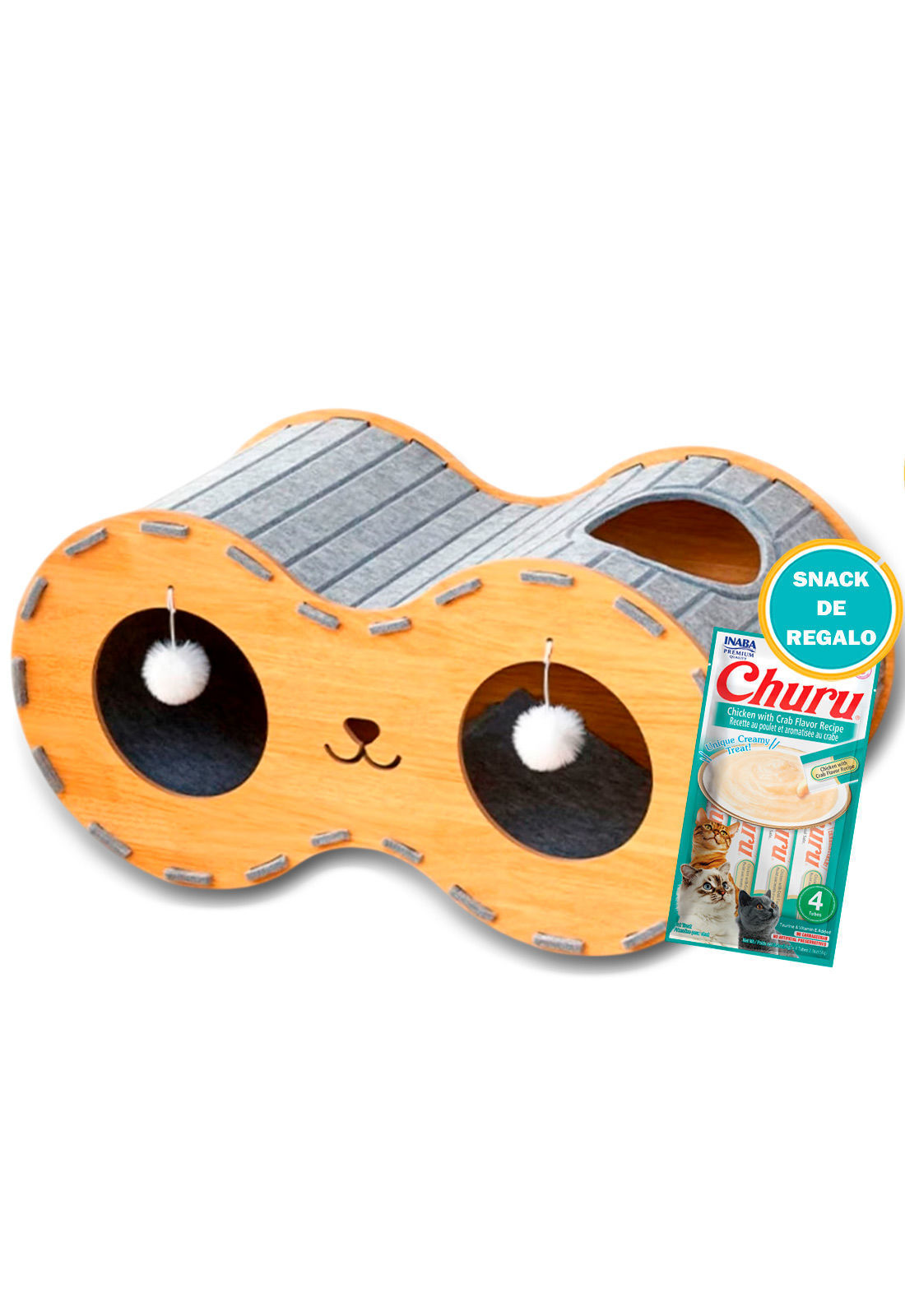 Cama telescópica fabricada en fieltro resistente color gris, que además funciona como rascador para mantener las uñas de tu gato en buen estado. Diseño práctico y funcional que combina descanso y entretenimiento.