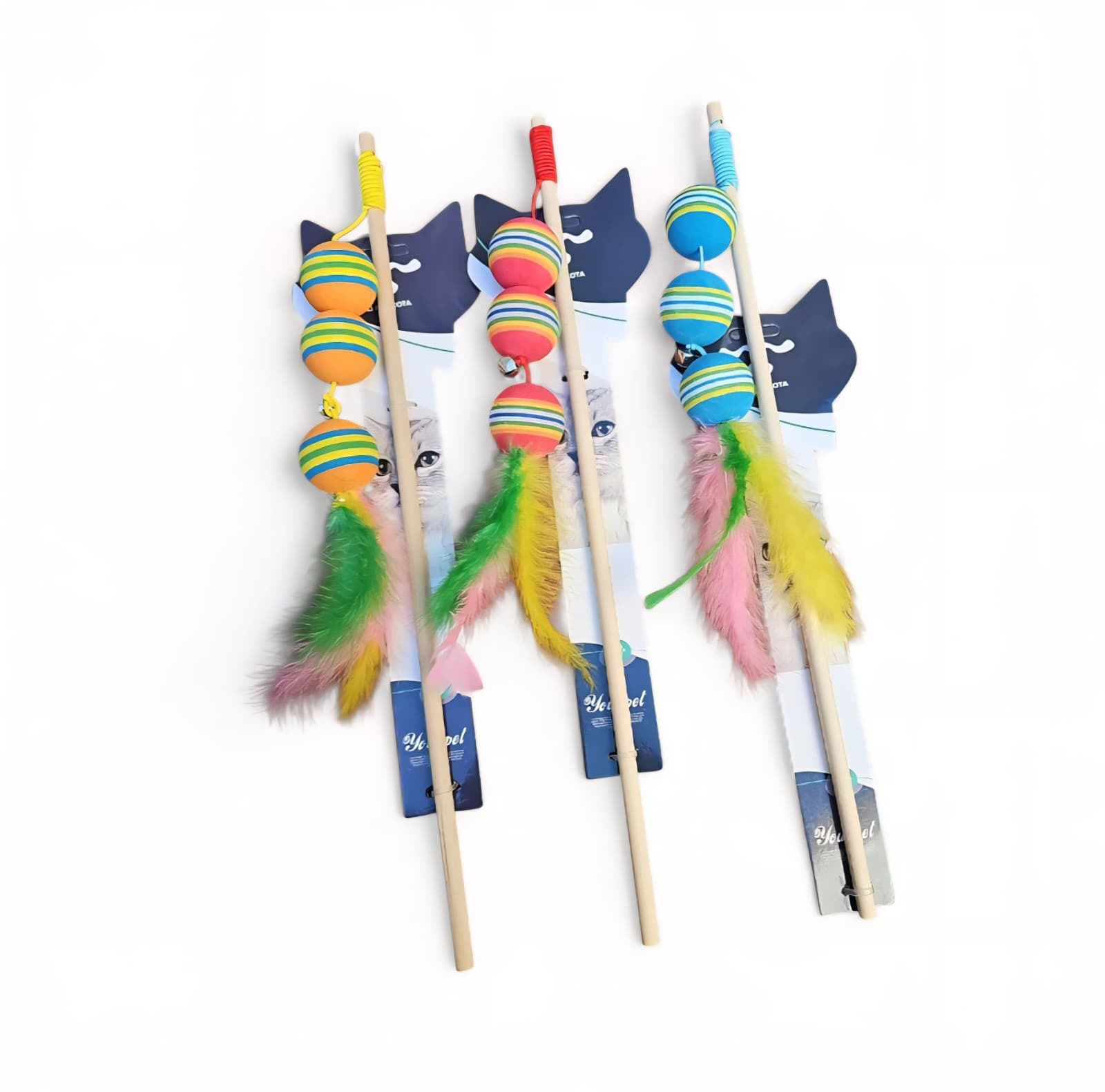 TU RACIÓN PROMOCIÓN DISPONIBLE Juguete gato varilla con bolitas y plumas 40cm Largo
