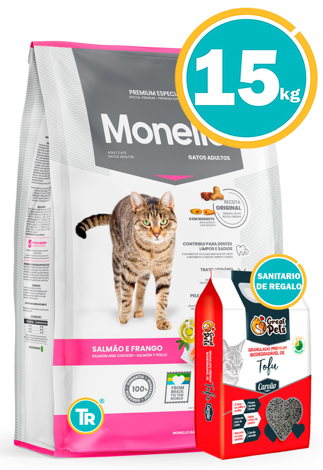 TU RACIÓN PROMOCIÓN DISPONIBLE MONELLO GATO ADULTO 15KG (SALMON Y POLLO) + Sanitario Great Pets (Sku TF0005 )