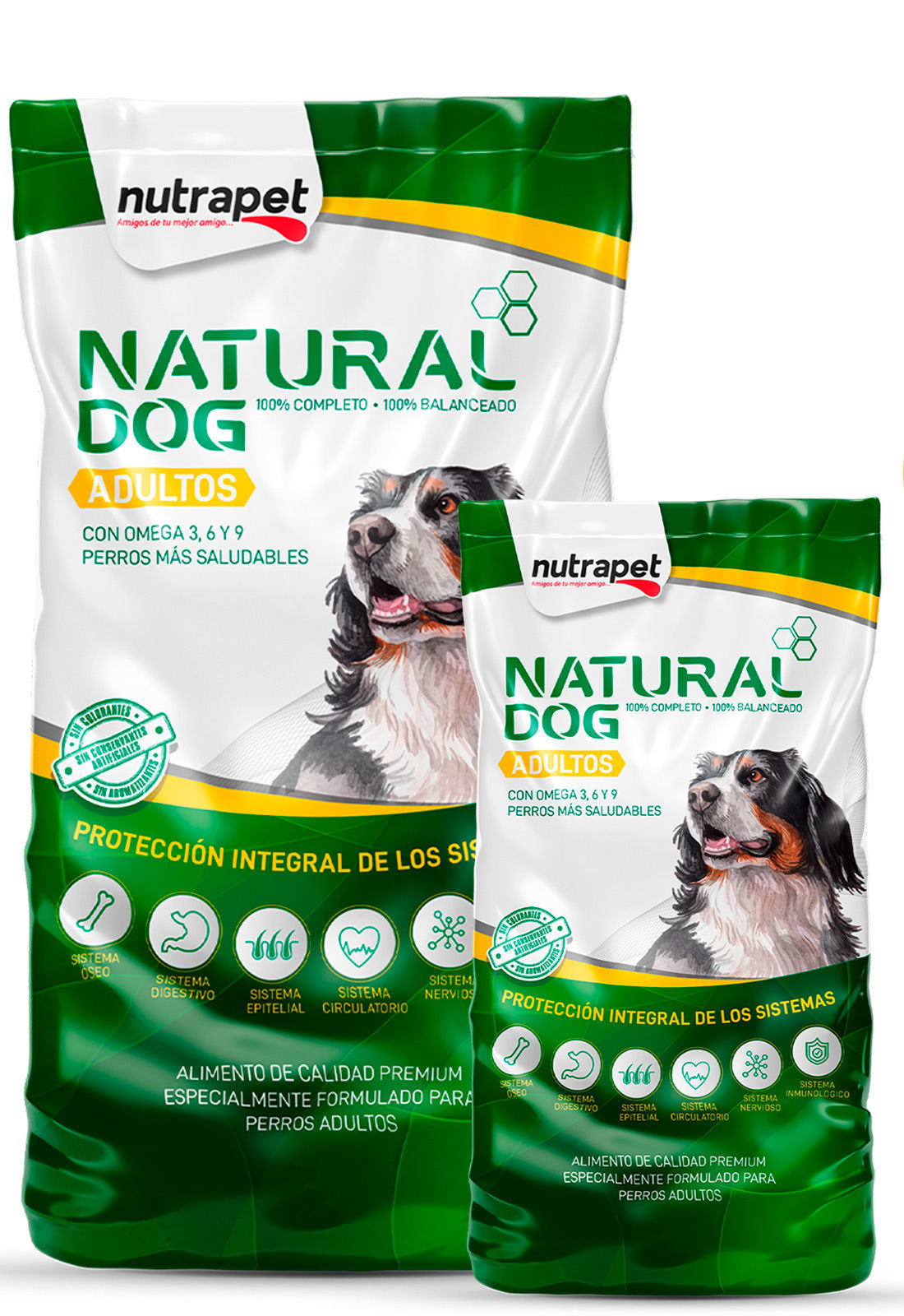 Natural dog posee Omega 3, 6 y 9, y una protección integral de los sistemas: Óseo, Digestivo, Epitelial, Circulatorio, Nervioso e Inmunológico.