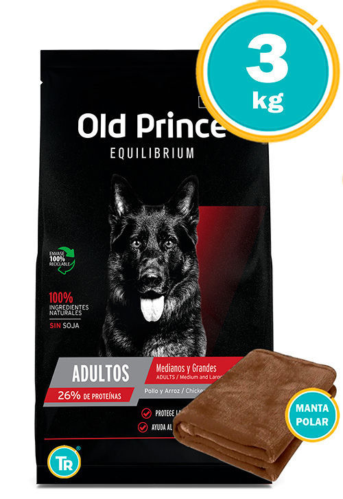TU RACIÓN PROMOCIÓN DISPONIBLE OLD PRINCE EQUILIBRIUM ADULTO MED Y GRANDE 3KG + MANTA DE REGALO
